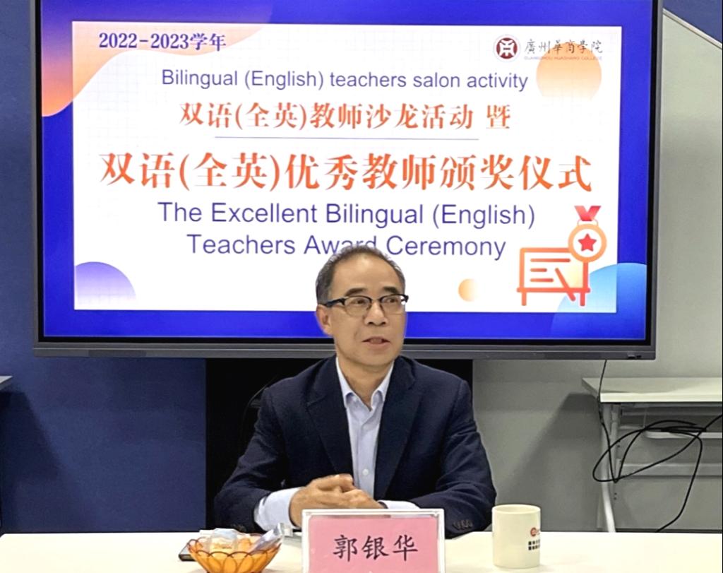 4月25日,我校国际教育发展委员会成功举办了双语(全英)教师沙龙暨2022-2023学年优秀双语(全英)教师颁奖仪式。广州华商学院郭银华执行校长,国际交流与合作处王文忠处长,教务处黄静萍副处长以及部分双语(全英)教师出席了此次活动。