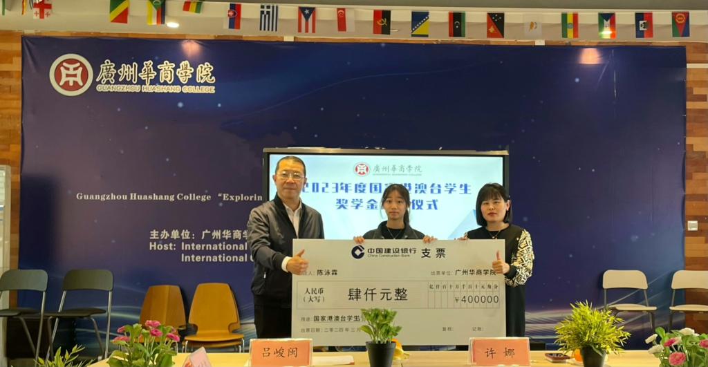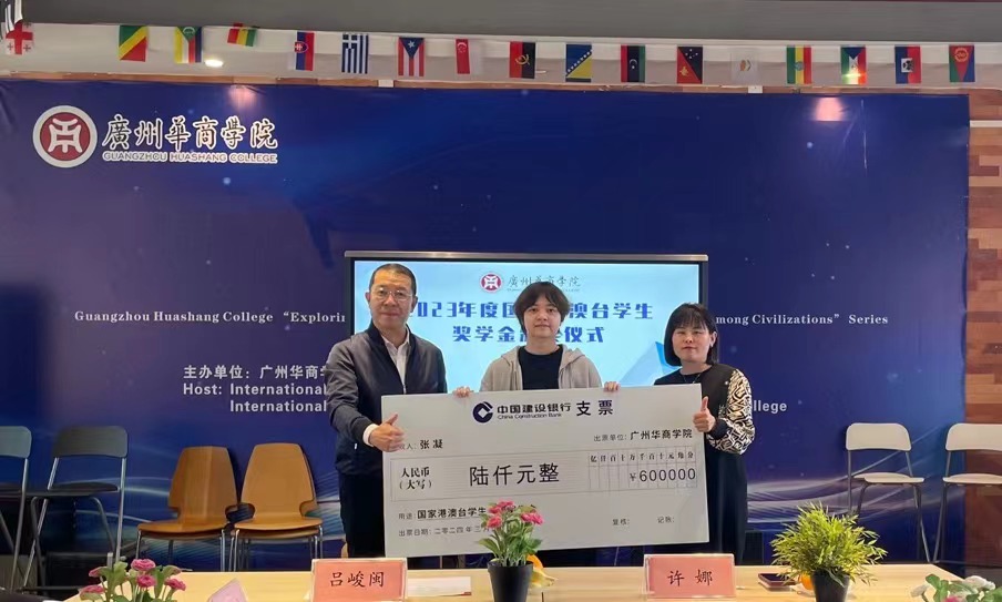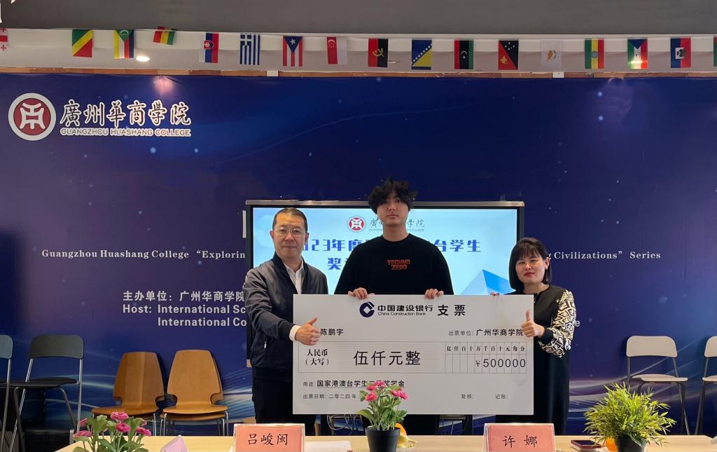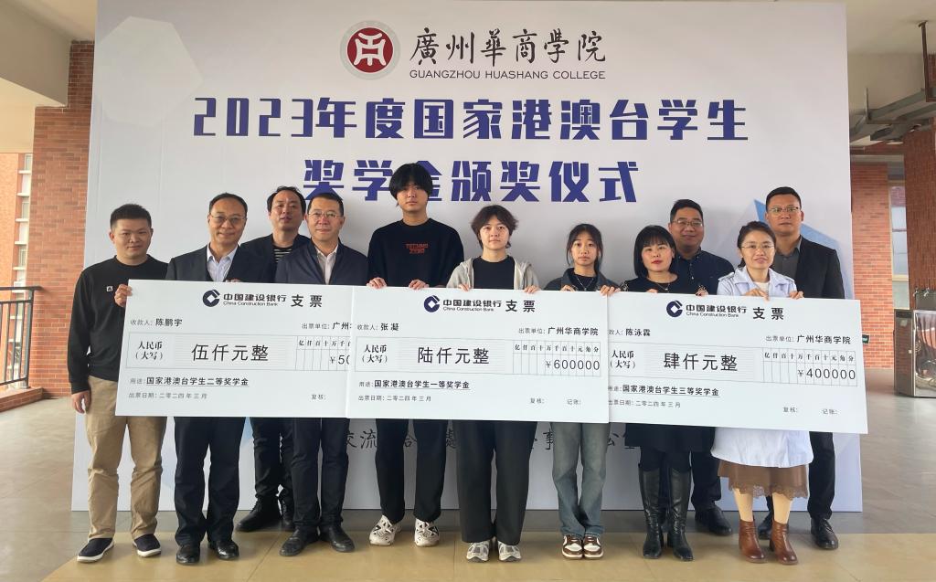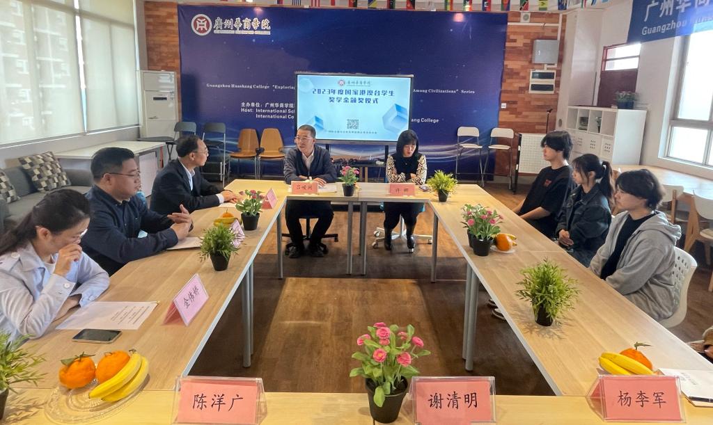 吕峻闽副校长、许娜校长助理为获得国家港澳台学生奖学金的2020级新闻学专业的张凝、2022级网络与新媒体专业的陈鹏宇、2023级会计学专业的陈泳霖3名港籍学生颁发奖学金,并合影留念,获奖学生分别发表感言,感谢国家、学校对他们的关心支持,表示将更加努力认真完成学业,立志成才。