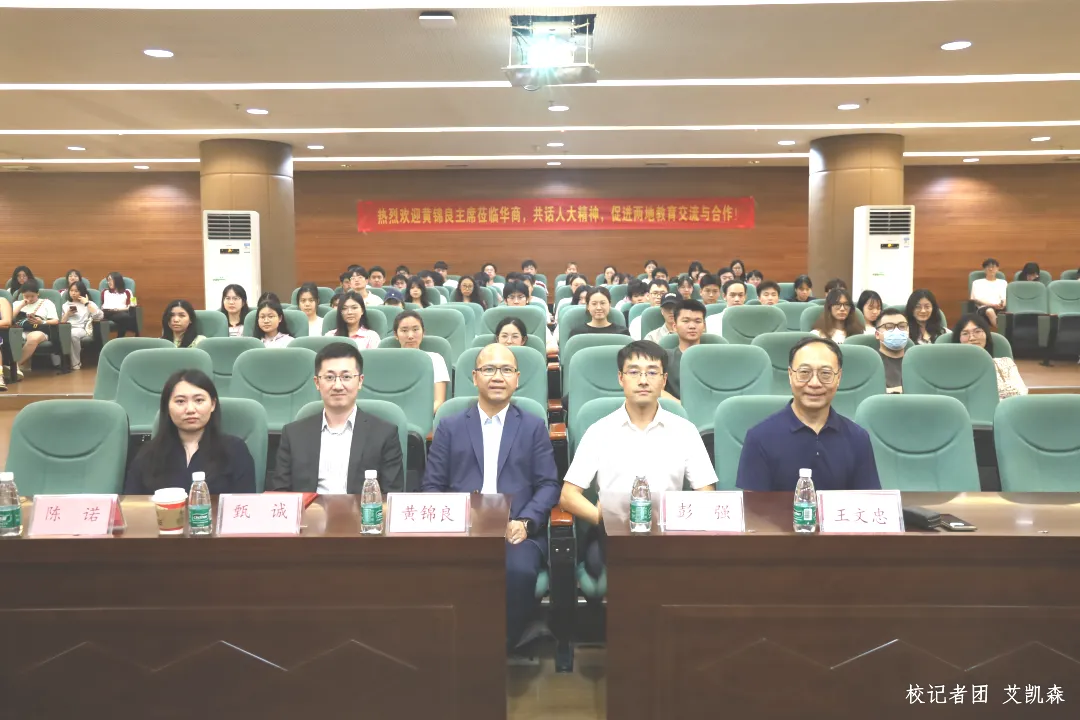 当天下午,我校“大湾区精英走进华商”系列讲座在广州校区图书馆报告厅举行,黄锦良先生应邀为我校师生做专题讲座。我校人事处处长彭强、国际交流与合作处处长暨港澳台办主任王文忠出席本次讲座;各院系的系主任、学工、辅导员,各专业教师代表及学生代表共300余人参加了本次讲座。