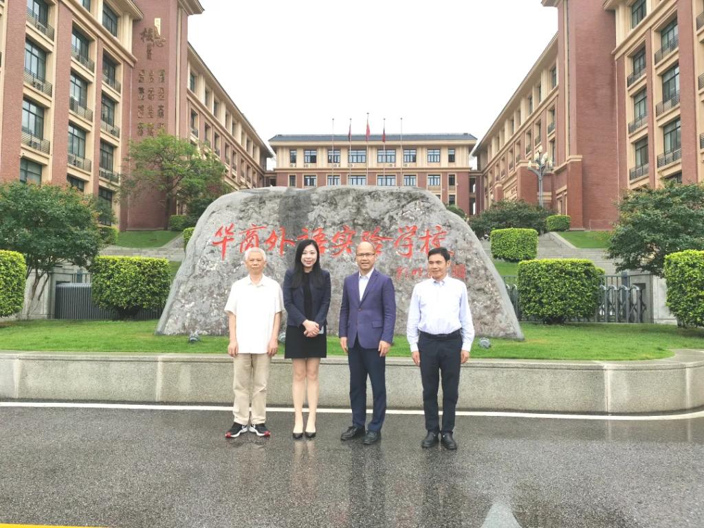 我校副校长廖伊曼、华商外语实验学校副校长付红根、副校长唐双同陪同黄先生参观了华商外语实验学校。