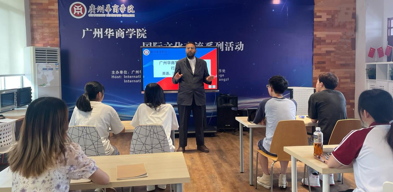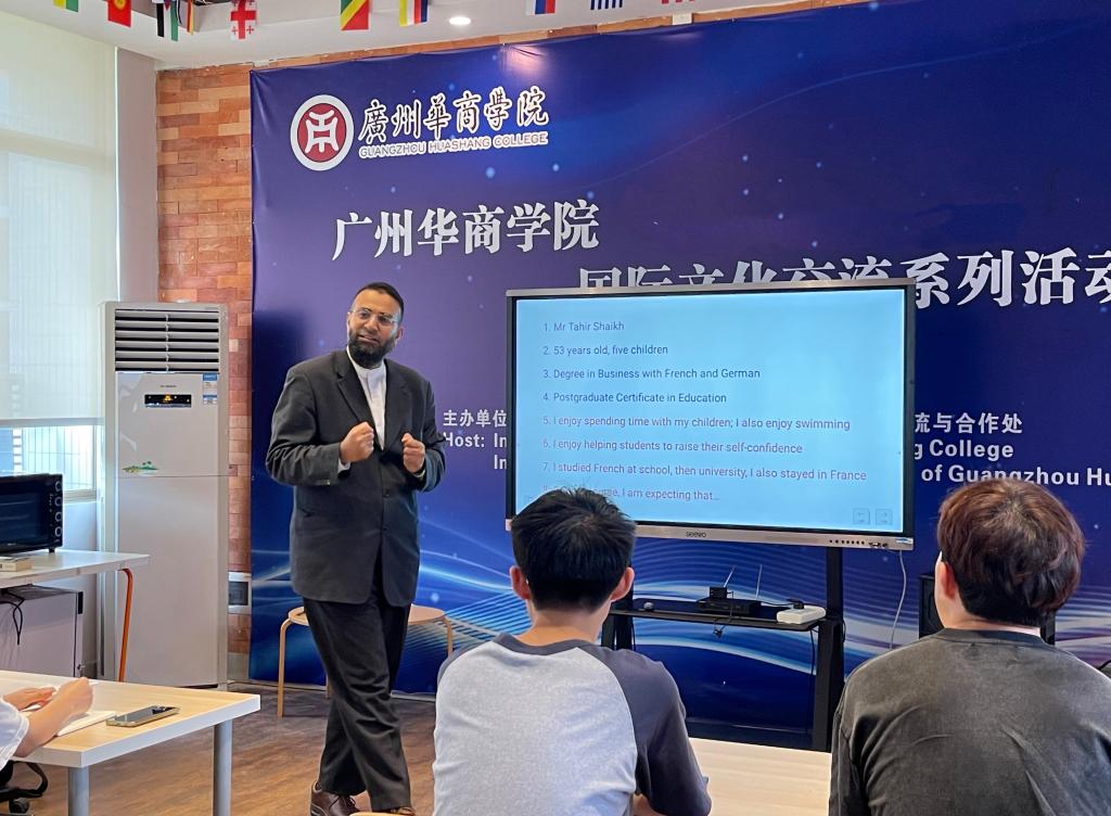 外教Tahir Shaikh给同学们做英语、法语的口语培训,在英语培训中,他以小组形式开展英文破冰活动,风趣的方式让在场的老师和学生们交流热身,让各小组成员用英文介绍自己的情况及分享各自外出学习、旅行经历等。