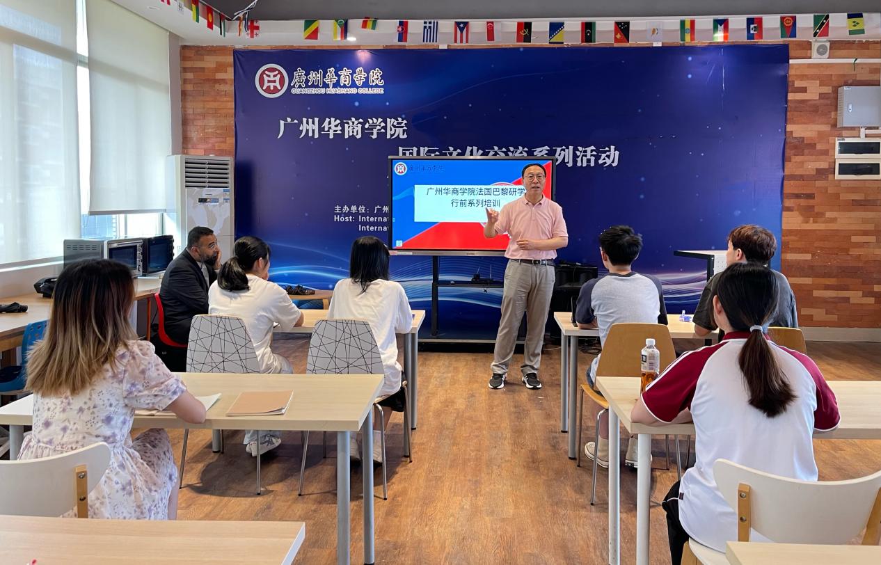 5月7日,我校在广州校区举办了优秀学生“赴法国巴黎研学”行前培训系列课程开班仪式。国际交流与合作处处长王文忠、外国语学院外教 Tahir Shaikh、法语教师齐爱萍、国际交流与合作处老师吴文诗参加本次培训活动。