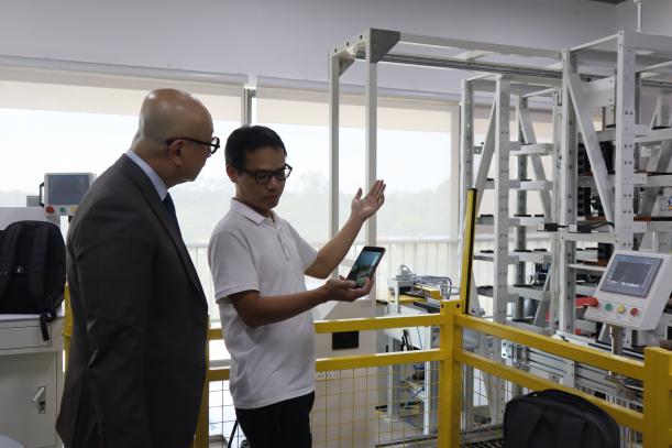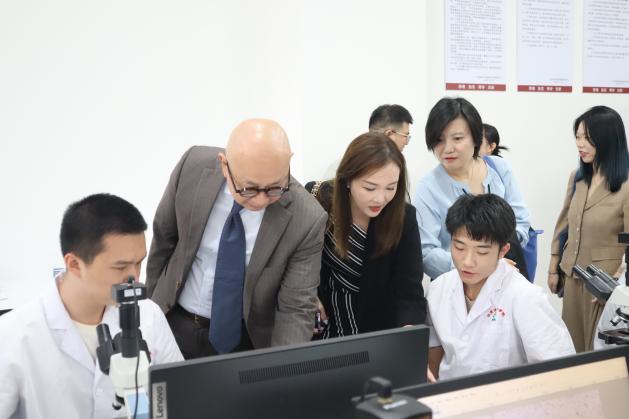 新加坡社科大学代表团先后参观了医药健康实验中心、人工智能产教融合实训基地和桃花岛电商实践基地等。在这些充满活力的实践课堂中,代表团不仅近距离观摩了学生们的实际操作和学习过程,还与师生们交谈互动,加深了他们对我校教学理念和实践能力的理解。