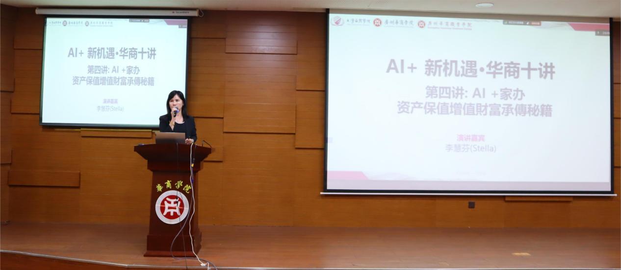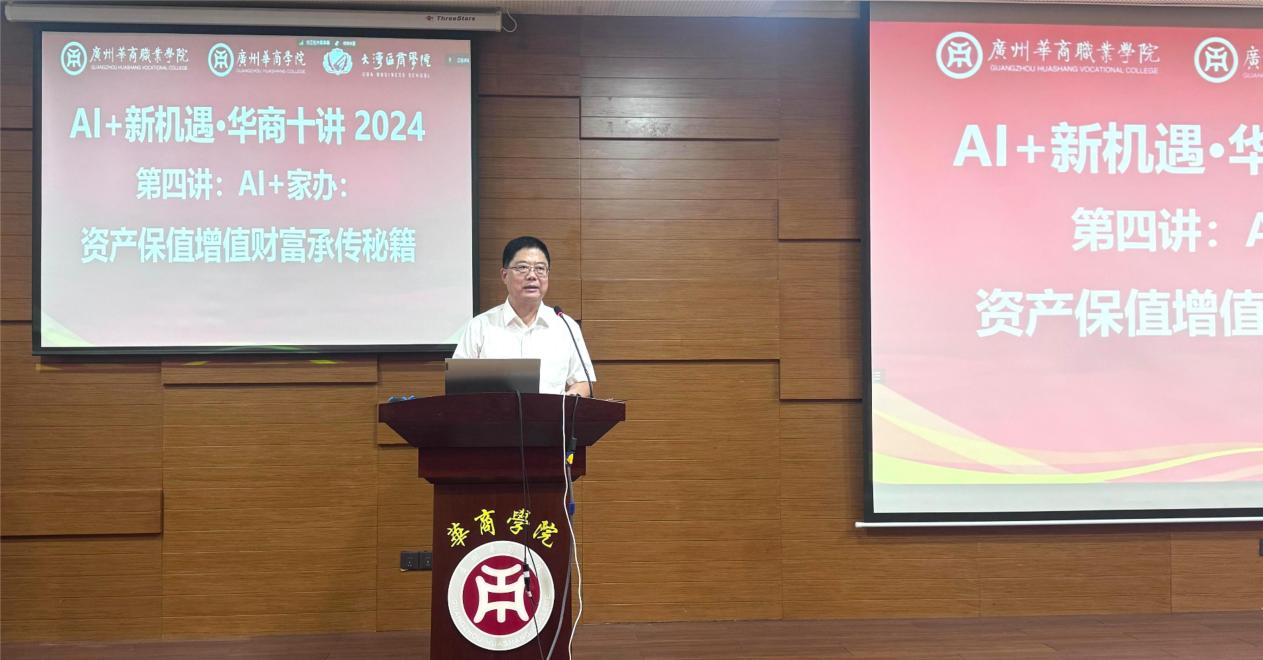 11月12日下午,华商教育集团旗下三所院校,广州华商学院、大湾区商学院、广州华商职业学院联合举办的大型系列公益讲座“AI+新机遇•华商十讲”之第四讲“AI+家办:资产保值增值财富承传秘籍”在广州华商学院图书馆举行。粤港澳三地近1500人线上线下参加此次活动。
