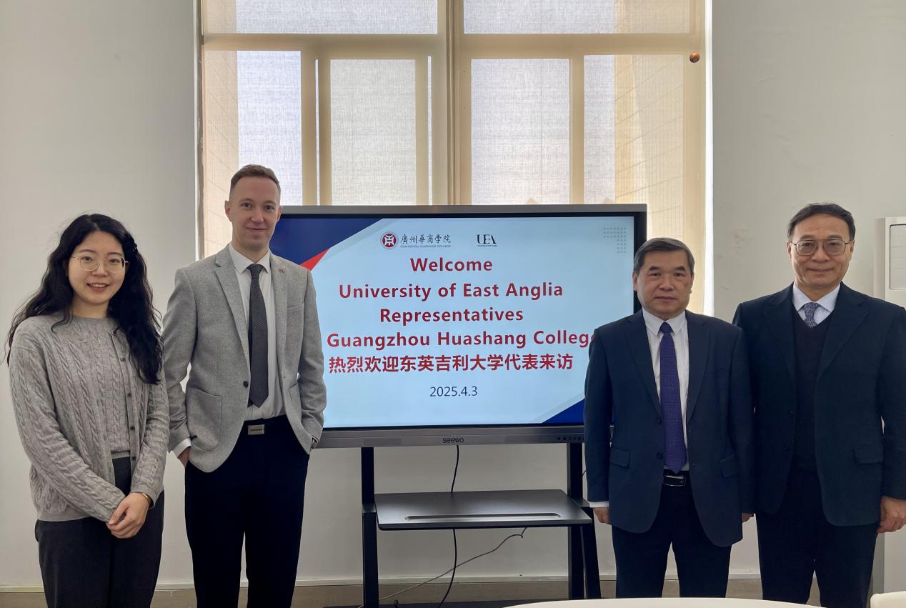 4月3日,英国东英吉利大学代表Tim Hubbard先生、Meiyi Chen女士到访广州华商学院广州校区。我校副校长焦方太、国际交流与合作处处长王文忠等热情接待来访客人。