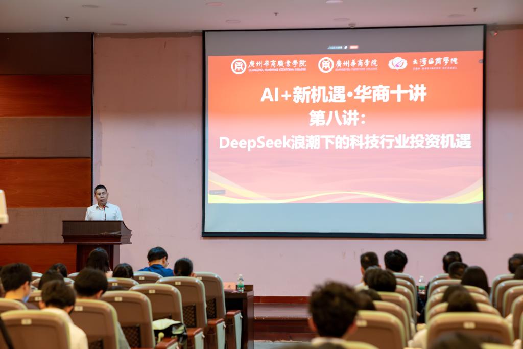4月15日下午,由华商科教集团旗下广州华商学院、大湾区商学院、广州华商职业学院联合举办的大型系列公益讲座"AI+新机遇·华商十讲"之第八讲"DeepSeek浪潮下的科技行业投资机遇"在会议中心4楼报告厅圆满举行。粤港澳三地1000多名师生、业界人士通过线上线下方式参与活动,共同探讨DeepSeek技术突破带来的产业变革与投资新机遇。
