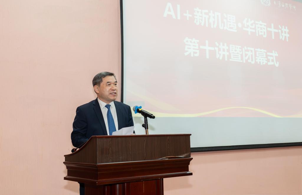 广州华商学院副校长焦方太在致辞中回顾了“华商十讲”系列活动的丰硕成果并代表学校向全体主讲嘉宾、合作单位及幕后团队致以诚挚感谢。他提到,自2024年6月启动以来,“AI+新机遇·华商十讲”陪伴我们走过了十场前沿与智慧交织的学术旅程。十讲聚焦人工智能与ESG、泛娱乐、教育、金融科技、国际贸易等时代命题,每一讲都凝聚了行业专家的真知灼见,为同学们构建起人工智能与多领域融合的完整图景,更是展现了华商科教集团推动湾区科创发展的坚定步伐,印证了“华商十讲”品牌日益扩大的社会影响力与学术价值。