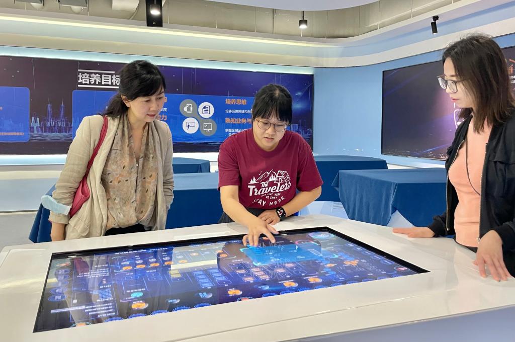 在我校人员陪同下,乐卓博大学代表参观了大数据与人工智能实验室、金融综合虚拟仿真实训室、桃花岛电商孵化中心、动漫游戏产业学院及健康医学院,深入了解了学校的教学设施与产教融合实习实践平台。