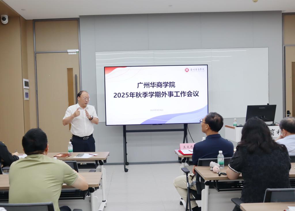 近日,广州华商学院在广州校区召开了2025年秋季学期外事工作会议。副校长焦方太、各单位外事负责人及外事联络员等出席会议。国际交流与合作处处长王文忠主持会议。