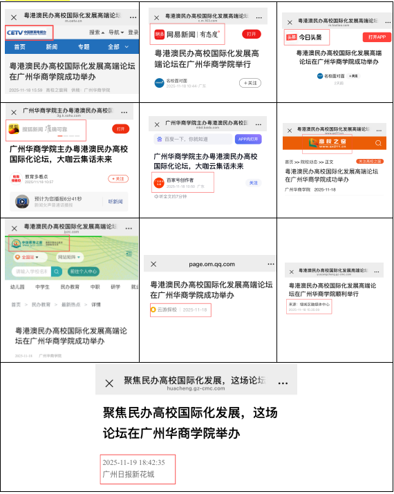 近日,粤港澳民办高校国际化发展高端论坛在广州华商学院举行,引发广泛关注。论坛吸引了中国教育电视台、中国教育之窗、高校之窗、今日头条、网易新闻、搜狐新闻、云游探校、百度、广州日报、增城日报等多家媒体专题报道。