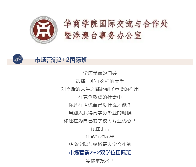 华商学院国际班 | 市场营销双学位国际班,选定你,就不放手