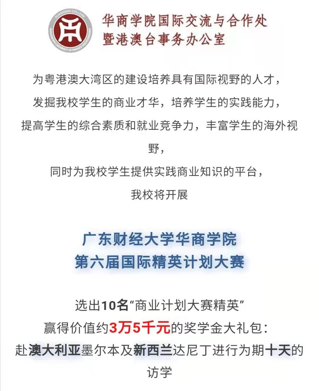 华商学院第六届国际精英计划大赛报名通知