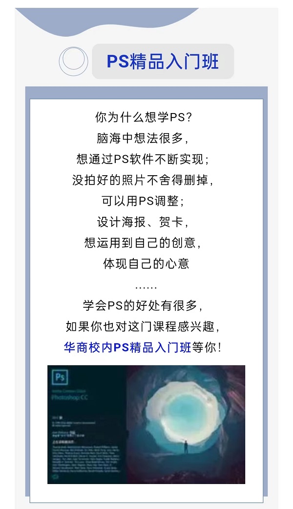 华商校内培训 | PS入门精品班、PC短视频制作(2023年春季)