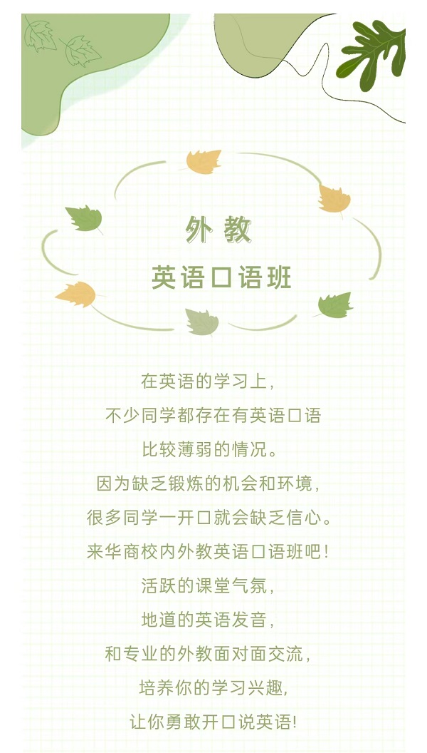 华商校内培训 | 外教英语口语班招生(2023年春季)