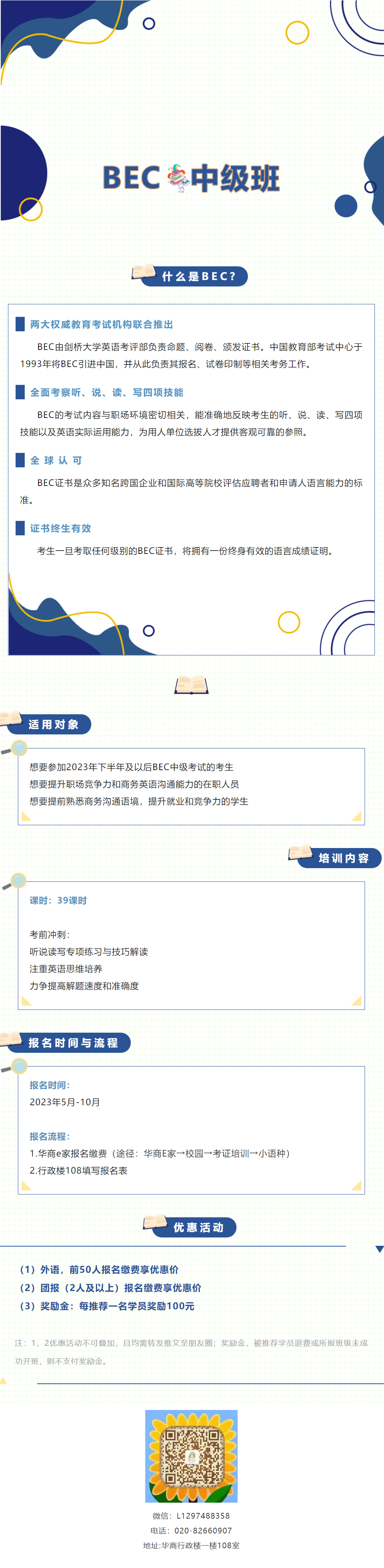 华商校内培训 | BEC中级班招生(2023年秋季)