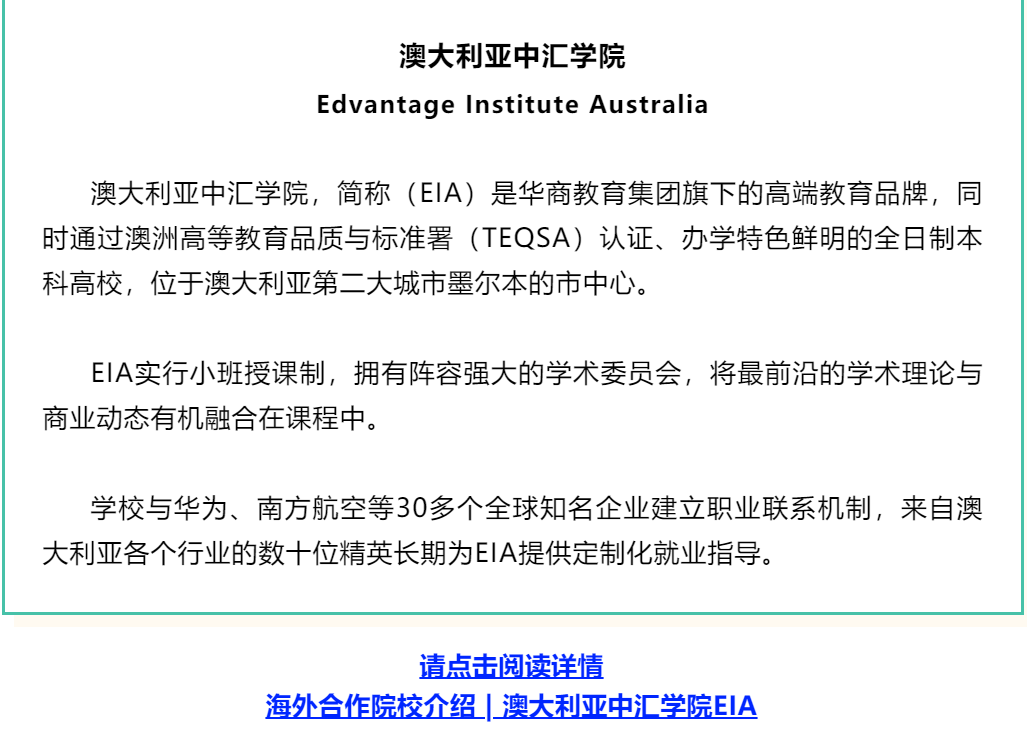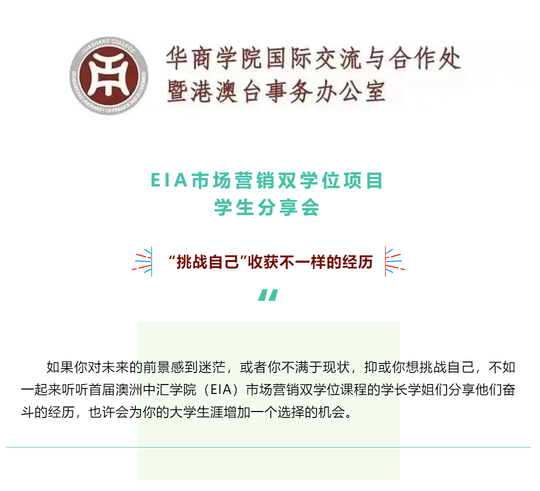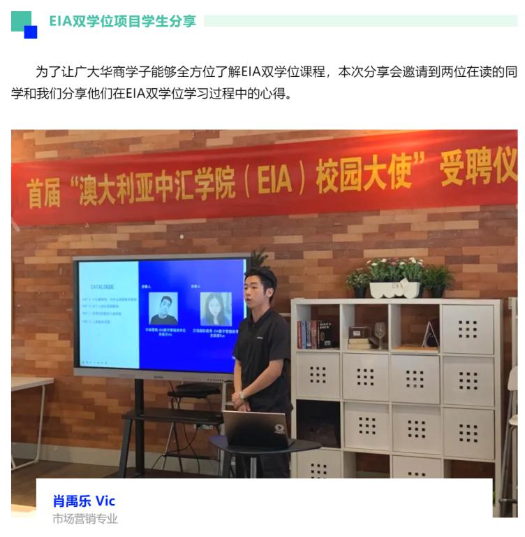 澳大利亚中汇学院(EIA)市场营销双学位项目学生分享会