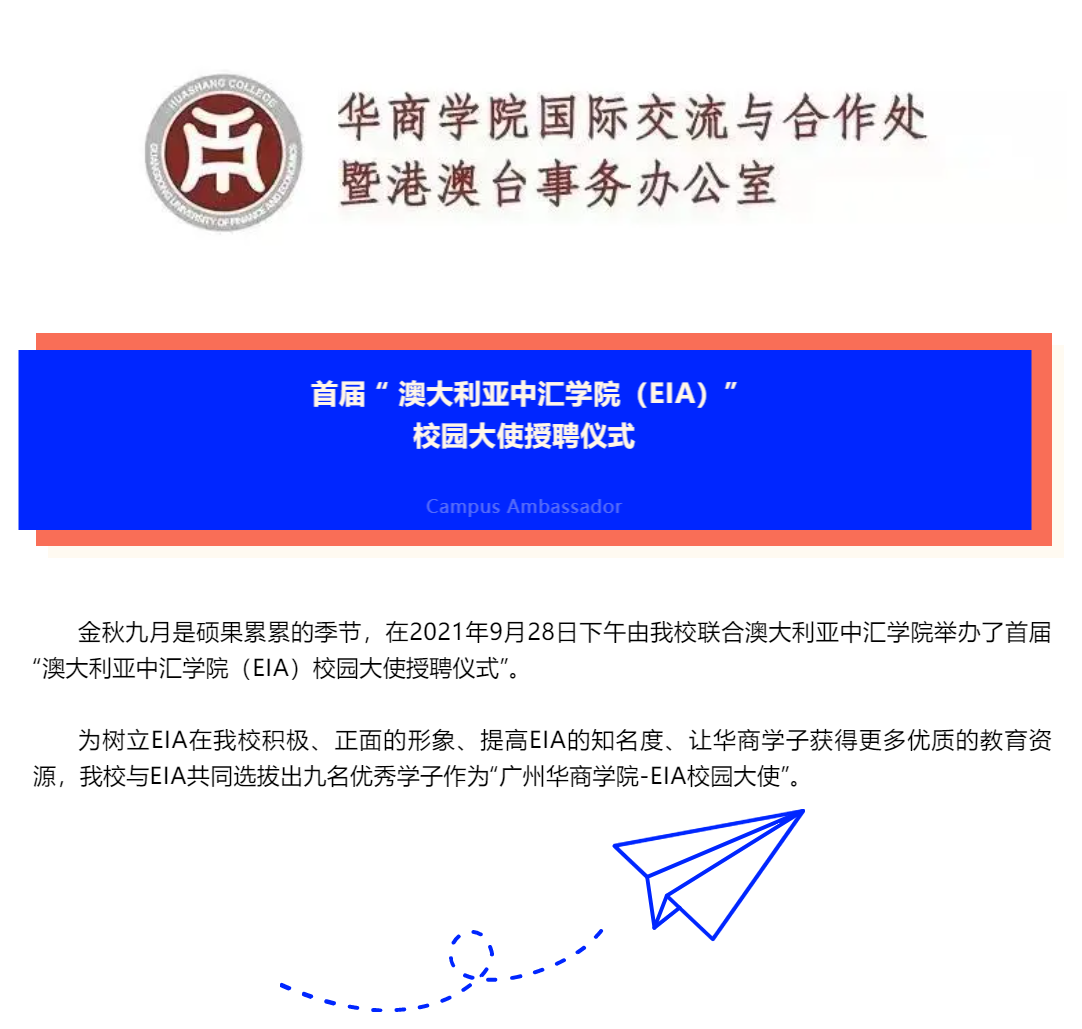 首届“广州华商学院-澳大利亚中汇学院(EIA)”校园大使授聘仪式