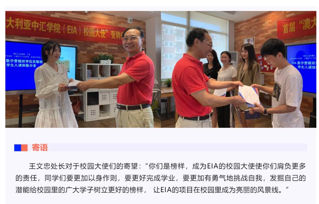 澳大利亚中汇学院(EIA)市场营销双学位项目学生分享会