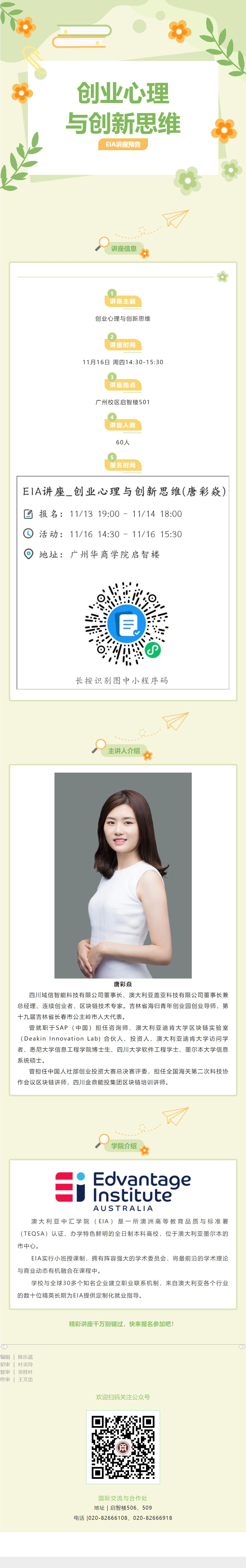 EIA讲座预告|创业心理与创新思维