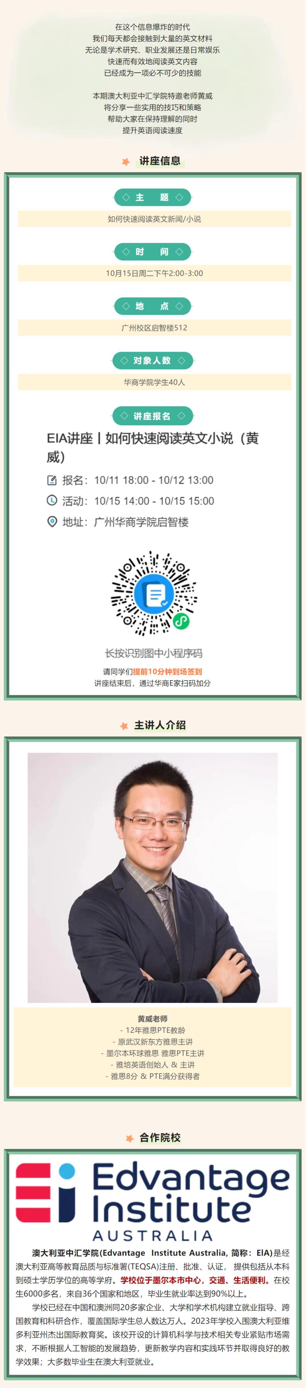 EIA讲座预告丨如何快速阅读英文新闻/小说