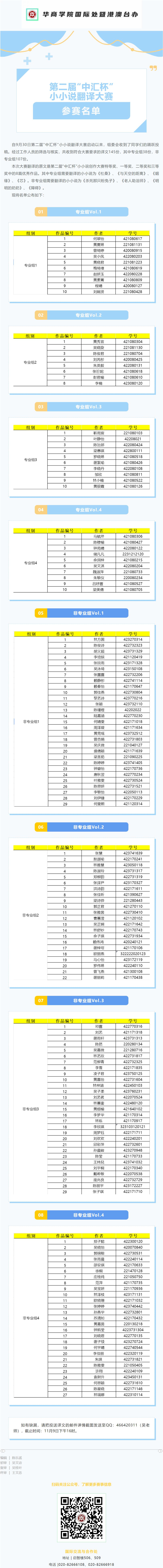 第二届“中汇杯”小小说翻译大赛参赛名单