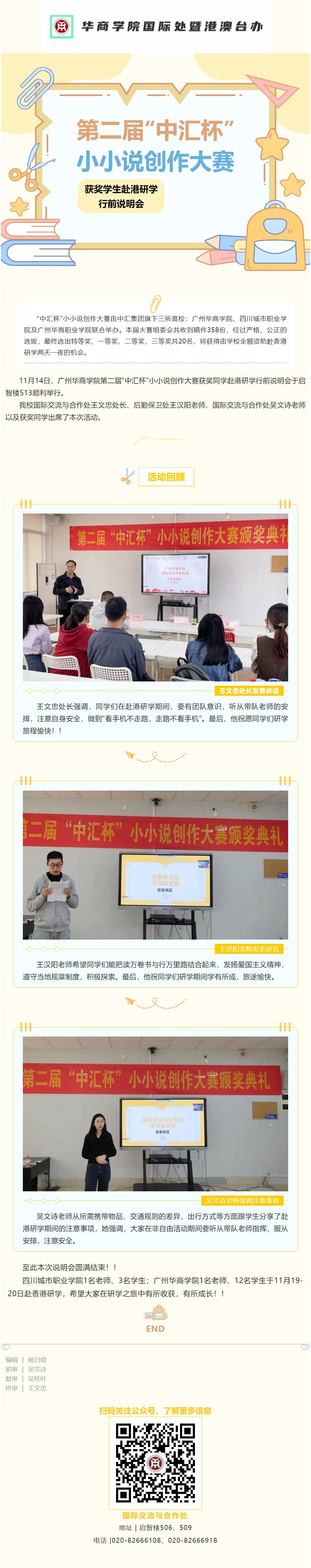 第二届“中汇杯”小小说创作大赛获奖学生赴港研学行前说明会