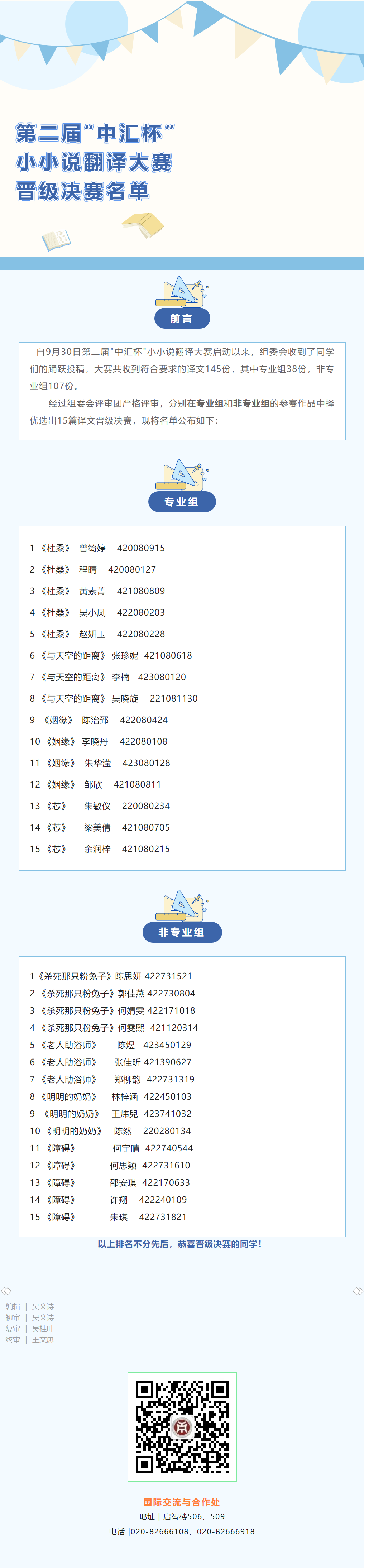 第二届“中汇杯”小小说翻译大赛晋级决赛名单
