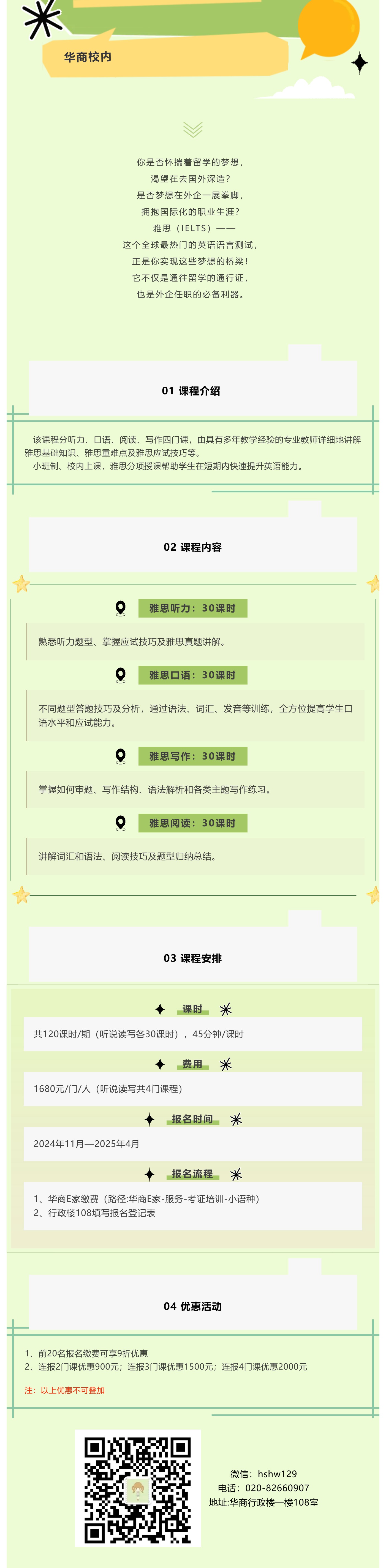 华商校内 | 雅思培训班招生啦!(2025年春季)