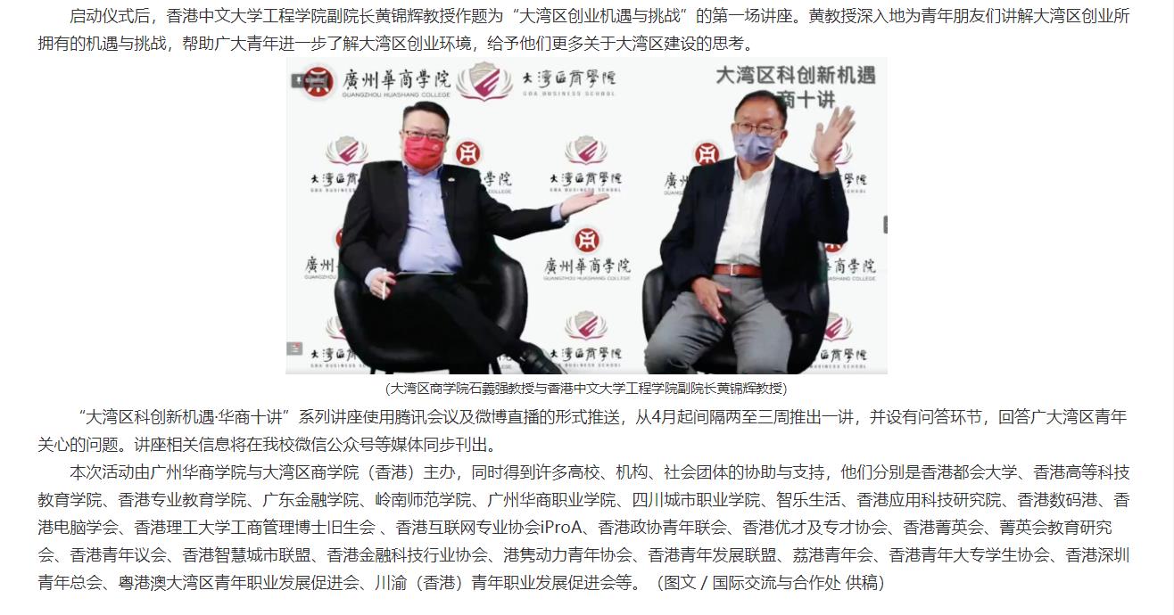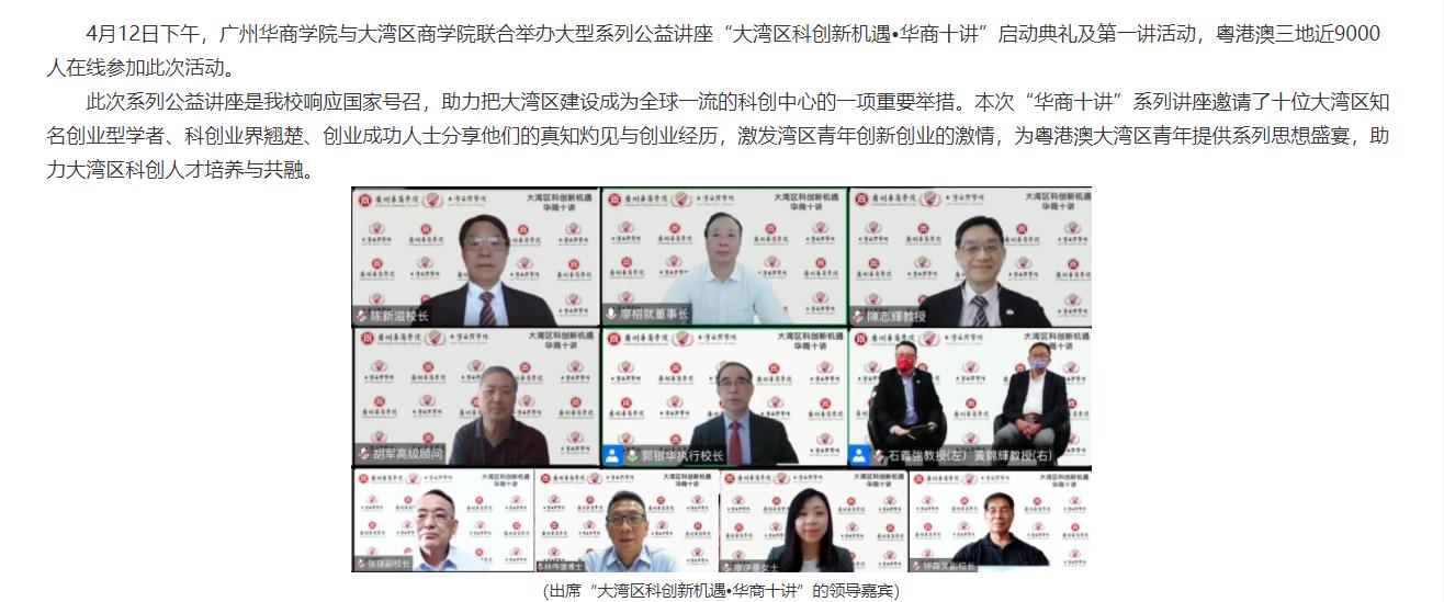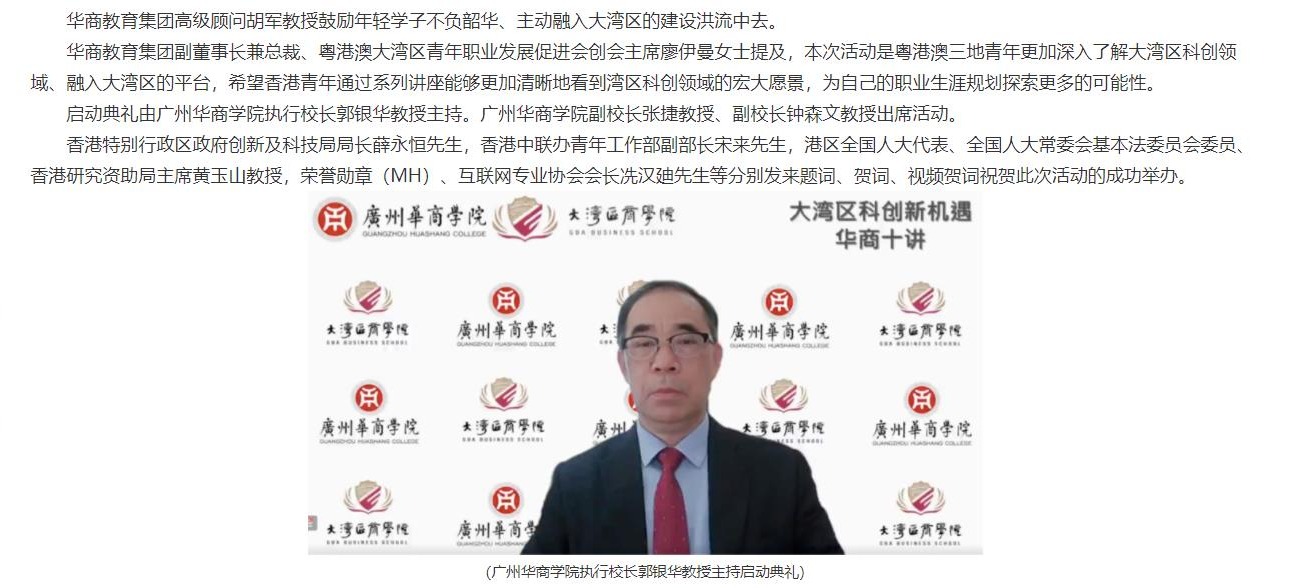 赋能粤港澳学子,共建国际科创新中心 “大湾区科创新机遇•华商十讲”启动
