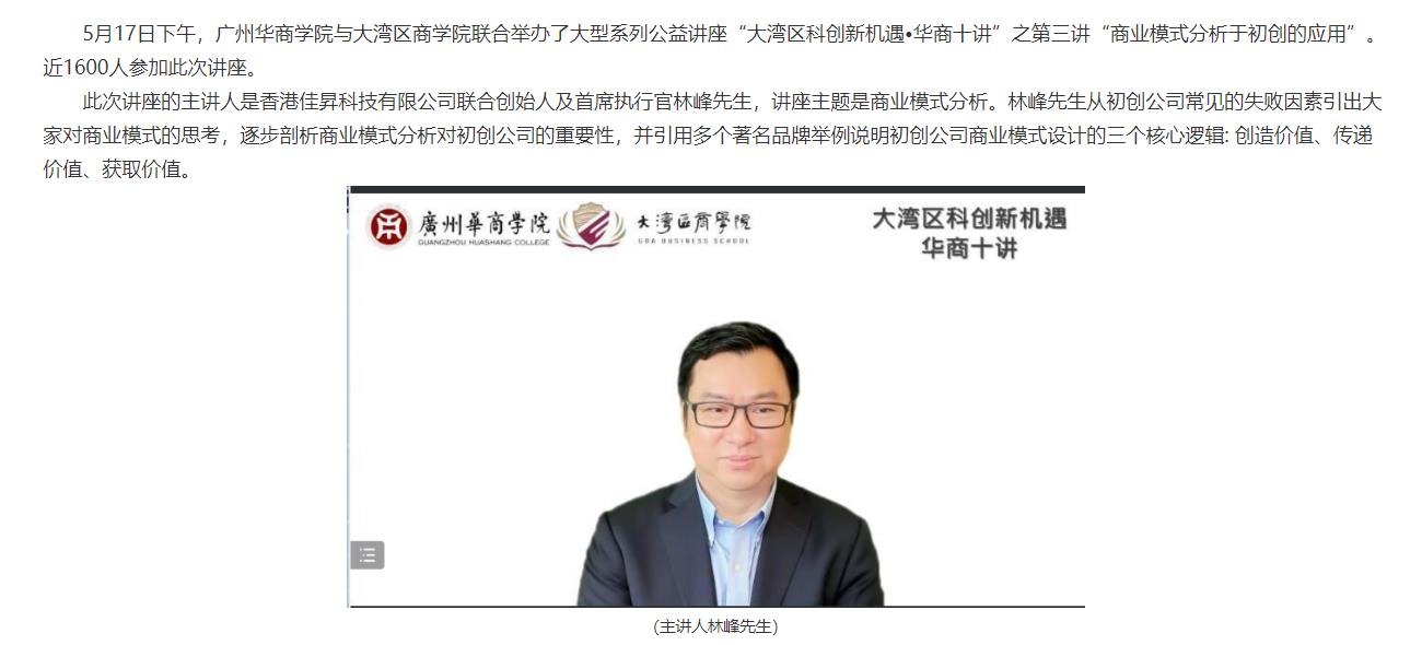 剖析商业模式,构建初创蓝图 “大湾区科创新机遇·华商十讲”之第三讲