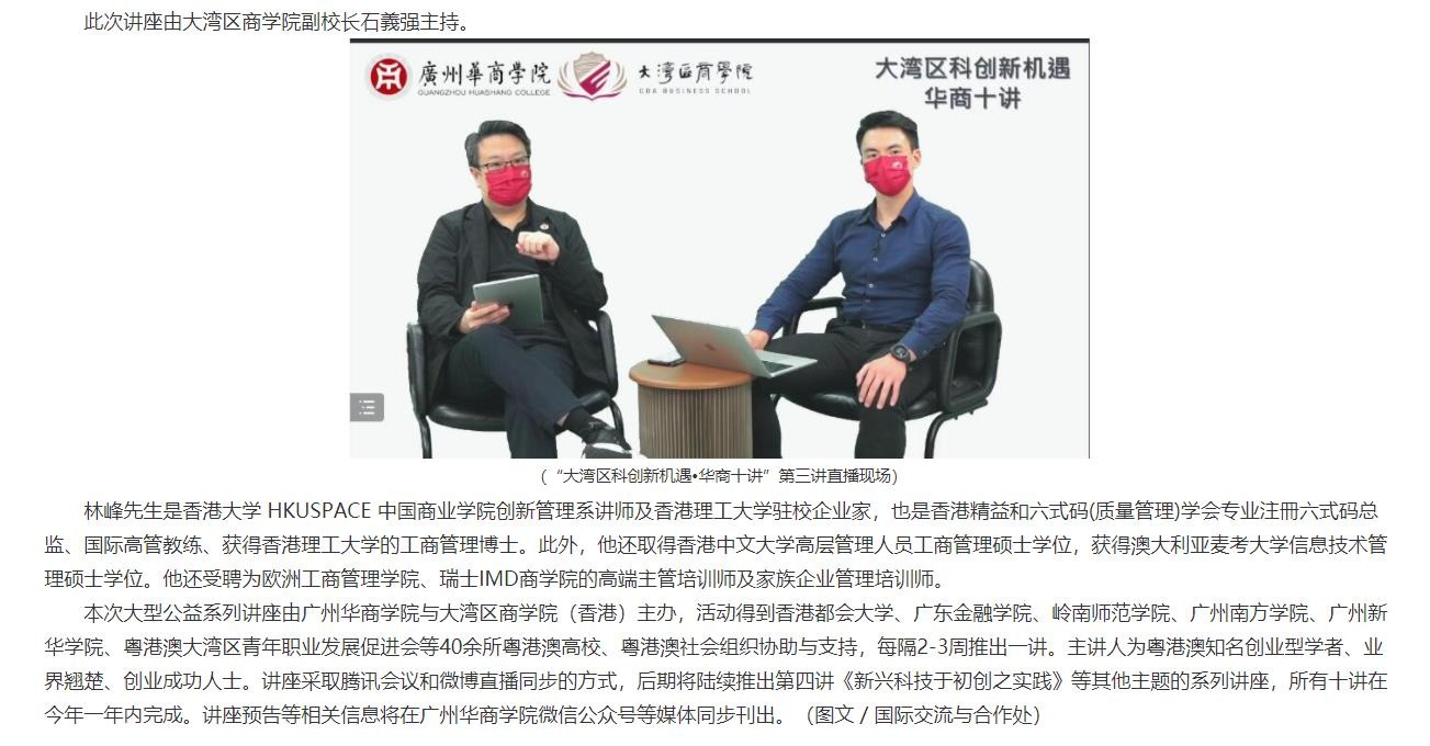 探究新兴科技,投身初创实践 ——“大湾区科创新机遇·华商十讲”之第四讲