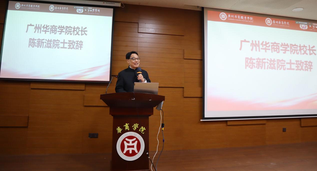 中国科学院院士、广州华商学院校长陈新滋教授表示,大湾区的融合和发展离不开AI的研究与广泛应用,高质量发展的大湾区也是“一带一路”倡议的重要支撑点,“一带一路”高质量发展更需要AI的支撑,人工智能的发展为高校带来前所未有的机遇,同时也为高校服务于社会带来了新的挑战。他指出各行业,特别是教育行业应该在这个国际化的大湾区,共同促进人工智能与各行业的融合,为湾区高质量发展,为一带一路高质量发展贡献华商力量。他希望三院校通力合作,把“华商十讲”打造成为湾区有影响力的经典项目,服务湾区,服务一带一路建设。