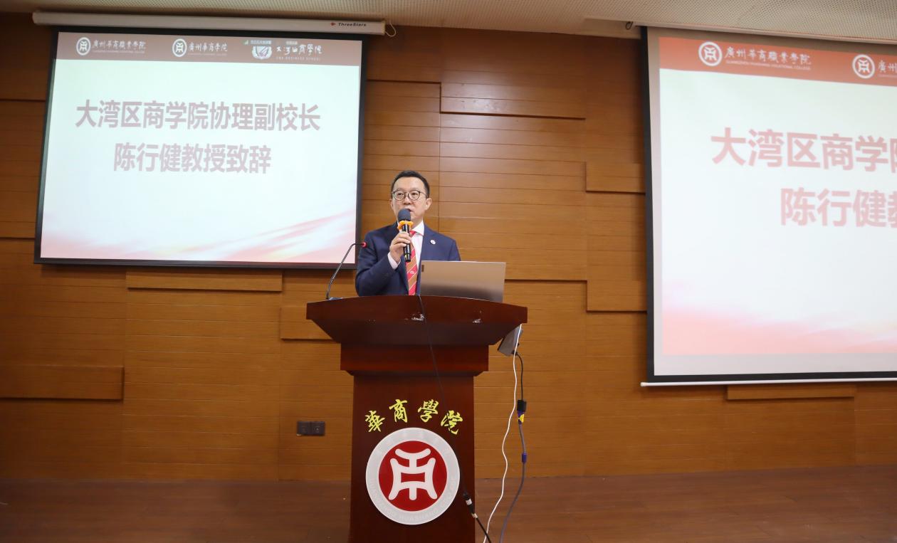 大湾区商学院协理副校长陈行健教授表示,他赞赏于学校为开拓湾区学生视野而所做的努力;三校精心策划的“华商十讲”主题更是符合新时代的需求,AI与日常生活、学习息息相关,他鼓励同学们认真把握此次机会,多学习、勤思考,为个人发展、为建设湾区做好准备。