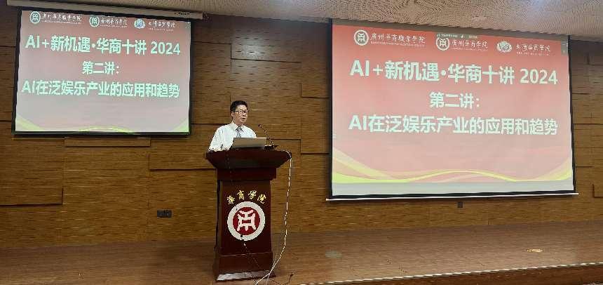 9月24日下午,华商教育集团旗下三所院校,广州华商学院、大湾区商学院、广州华商职业学院联合举办的大型系列公益讲座“AI+新机遇•华商十讲”之第二讲“AI在泛娱乐产业的应用和趋势”在广州华商学院图书馆举行。粤港澳三地近3500人线上线下参加此次活动。蓝海国际资本有限合伙基金合伙人李嘉俊先生为本次讲座的主讲人。中汇集团印国庭总监、大湾区商学院协理副校长陈行健教授、广州华商学院校长助理张军教授、广州华商学院国际交流与合作处王文忠处长、广州华商职业学院国际教育学院钱芳院长及师生代表参加了现场活动。