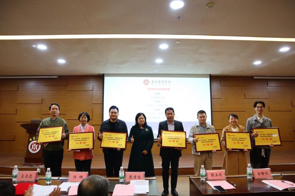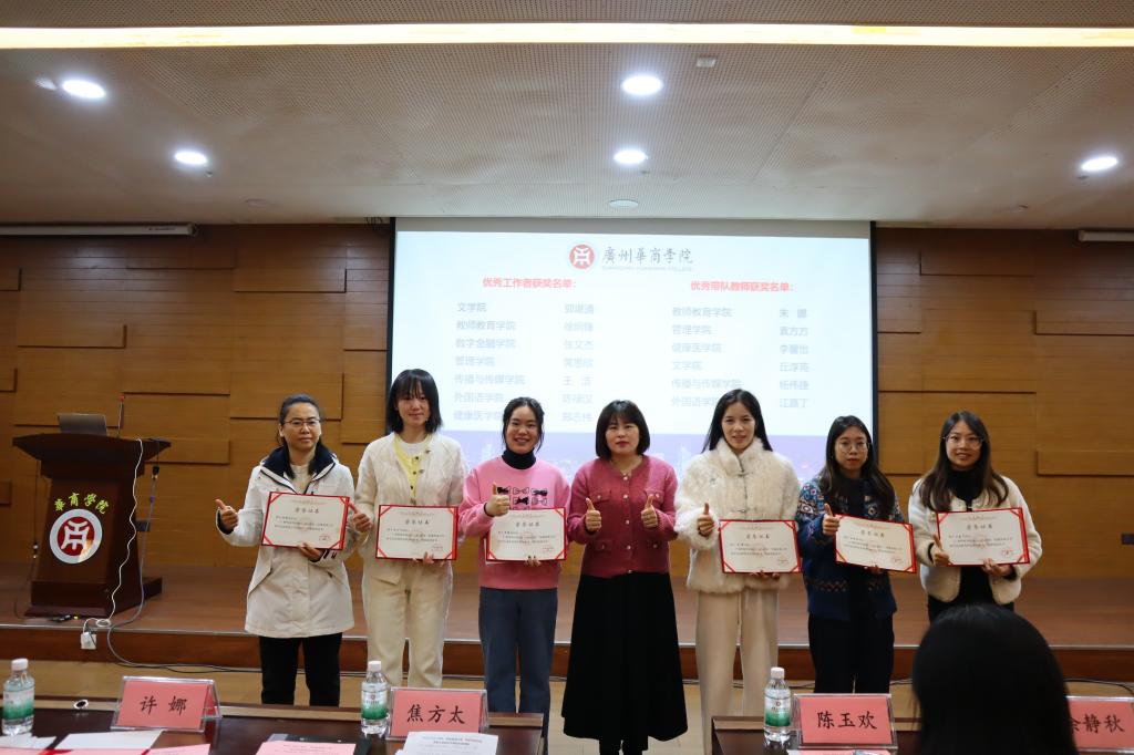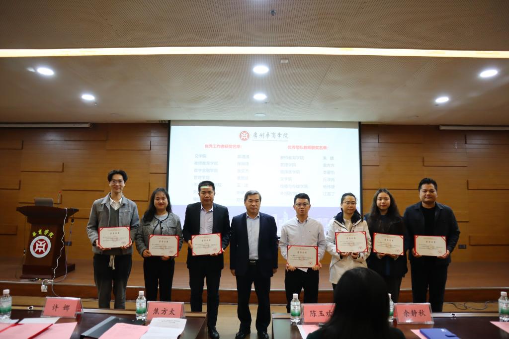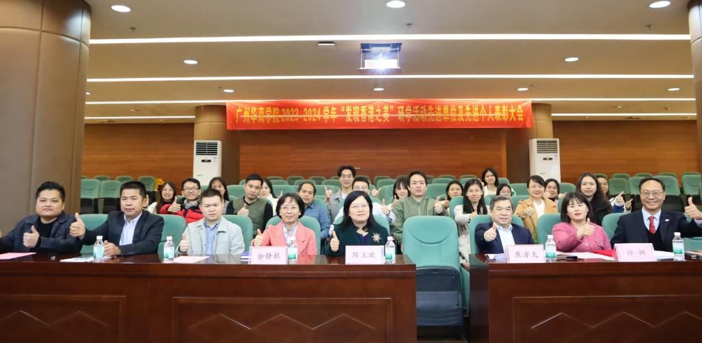 12月27日,广州华商学院2023-2024学年“发现香港之美”研学活动先进单位及先进个人表彰大会在广州校区图书馆报告厅成功举办。广州华商学院党委书记陈玉欢、副校长焦方太、副校长许娜、财务处处长余静秋、各二级学院学生工作负责人、研学优秀工作者、优秀带队教师出席了本次表彰大会。大会由港澳台办主任王文忠主持。陈玉欢书记等校领导为先进单位及个人颁奖。