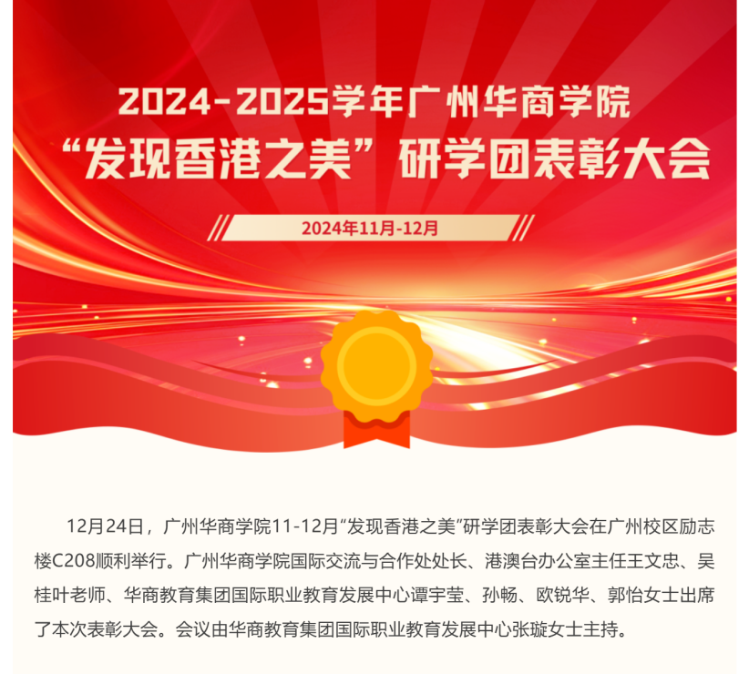 广州华商学院举办2023-2024学年“发现香港之美”研学活动先进单位及个人总结表彰大会